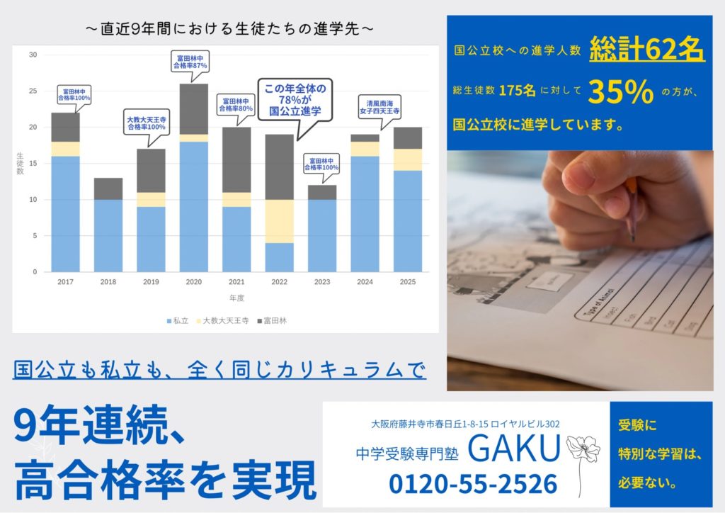 最新の合格実績(2024年度入試)を含む、過去5年分の合格実績になります。